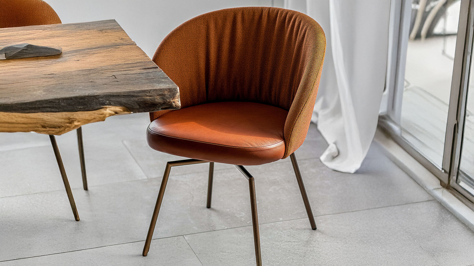 Reduced to the essentials by the KFF design team, the GIRO upholstered chair deliberately offers a little more support in the upper back thanks to its elegantly shaped backrest. Light flexibility and the pleasant upholstery of the seat guarantee the comfort you expect from KFF. The chair has everything you need to rest your eyes and mind. Extended sitting at your own dining table or in a restaurant combines the pleasure of comfort and cuisine.