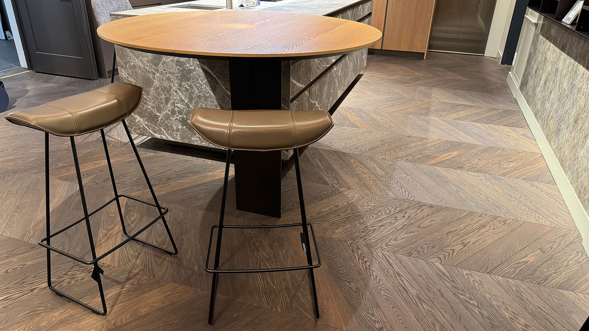 2 Stück Kya Barhocker von Freifrau sind bei Grünbeck Einrichtungen als Ausstellungsstücke im Design Sale günstig verfügbar.