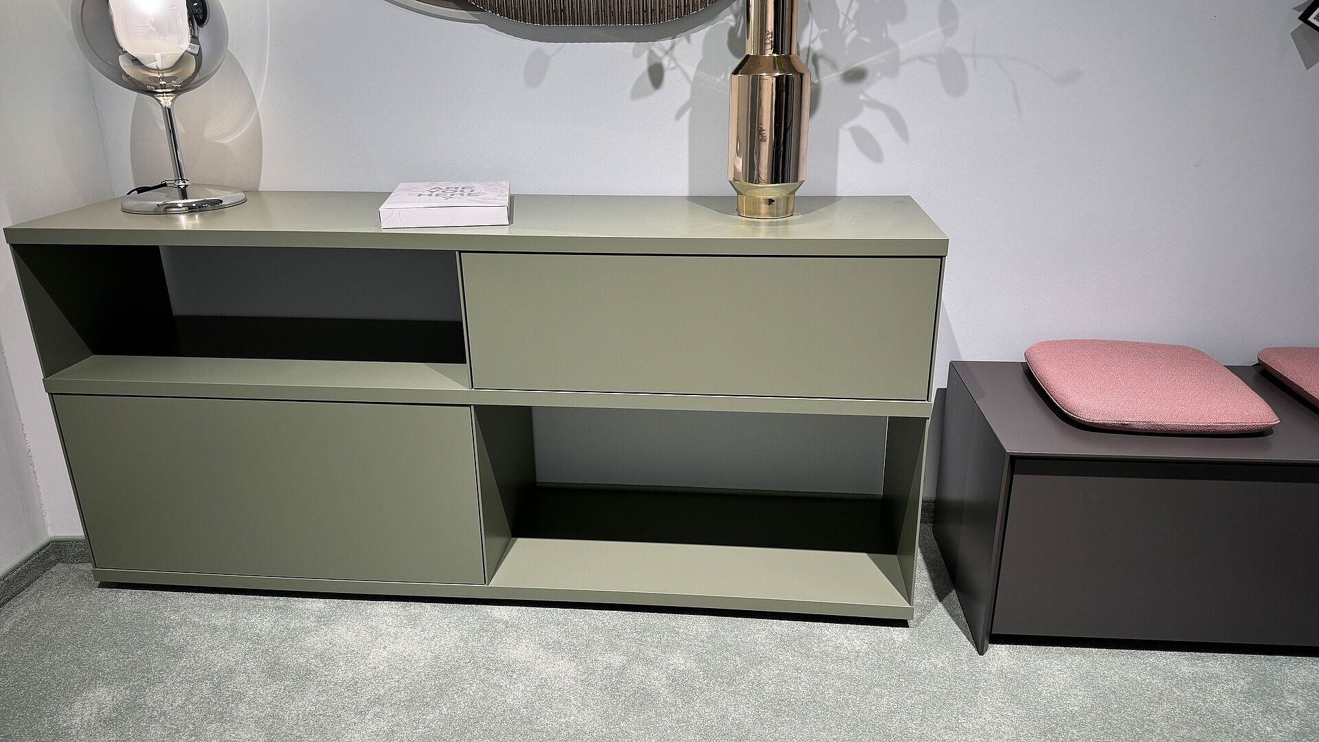 obere Ebene, H 25cm: 1 offene Box niedrig, 1 Schublade niedrig