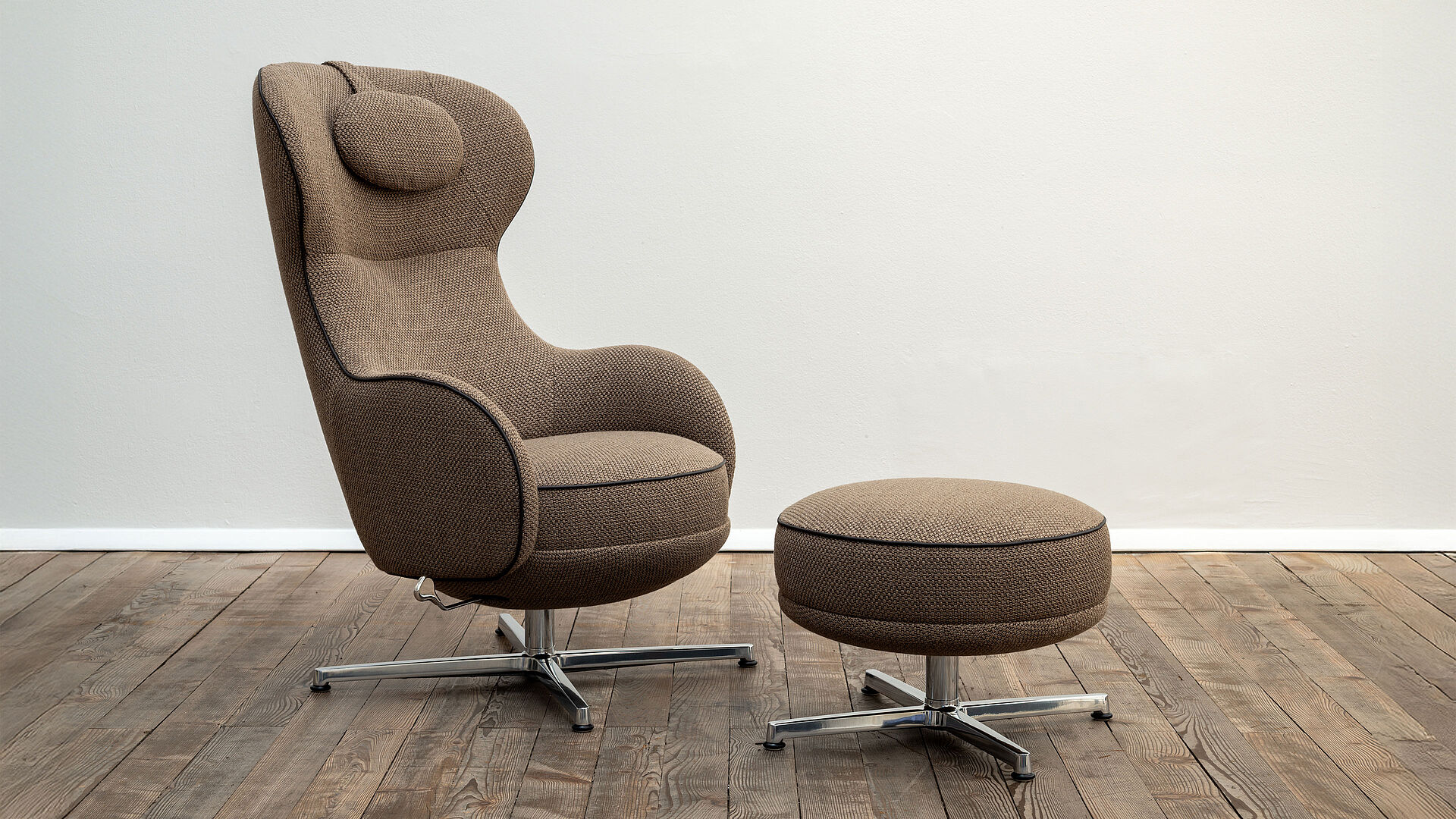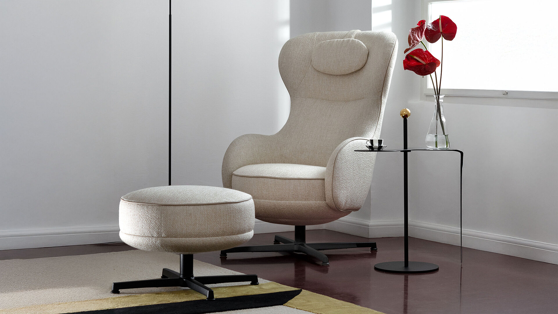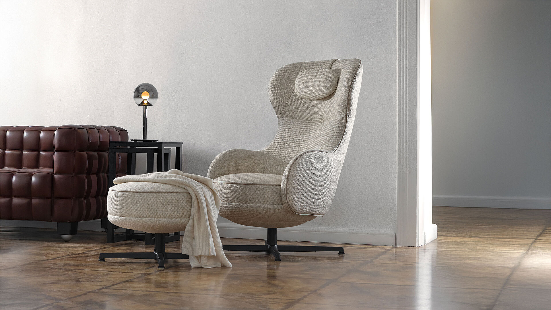 TUYA, ein Relaxfauteuil mit Hocker ist ein echter Wittmann im Design von Jaime Hayon. Langlebige Qualität und dauerhafter Komfort zeichnen auch dieses neue Designstück von Wittmann aus. Dafür sorgen der bewährte Wittmann Taschenfederkern im Sitz, die hochwertige stufenlos arretierbare Wippmechanik sowie das standhafte (360 Grad) Drehgestell.